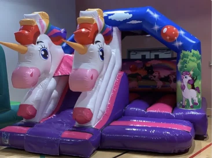 Themed castle/Slide is Suitable for any occasion or event, with a enclosed slide on the side for even more fun and walls for safety what could be better.