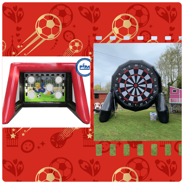 This inflatable games package is an ideal choice for the larger party or event. It's great for school fetes & fairs too. The package is suitable for both children and adults and will keep them entertained for hours. Please note that there is a £5 charge for each football lost.